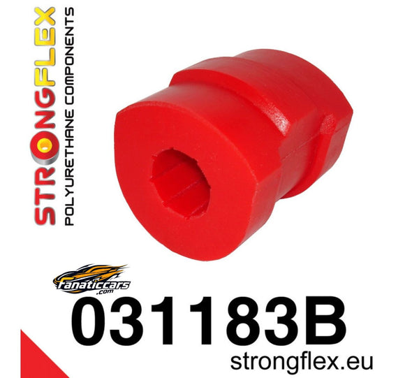 Casquillo de barra estabilizadora delantera de Strongflex en poliuretano 80 ShA. Sustituye los silentblocks OEM por versiones reforzadas para ganar precisión, estabilidad y durabilidad en tu BMW E36.