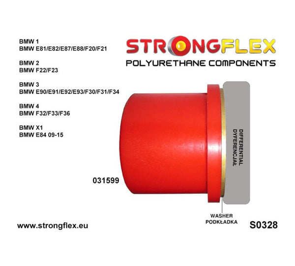Kit de silentblocks completo Sport para BMW F22 y F23 tracción trasera fabricado por Strongflex en poliuretano 90 ShA. Sustituya los bujes de goma por versiones reforzadas para ganar precisión, estabilidad y durabilidad frente a temperatura, aceites y grasas.